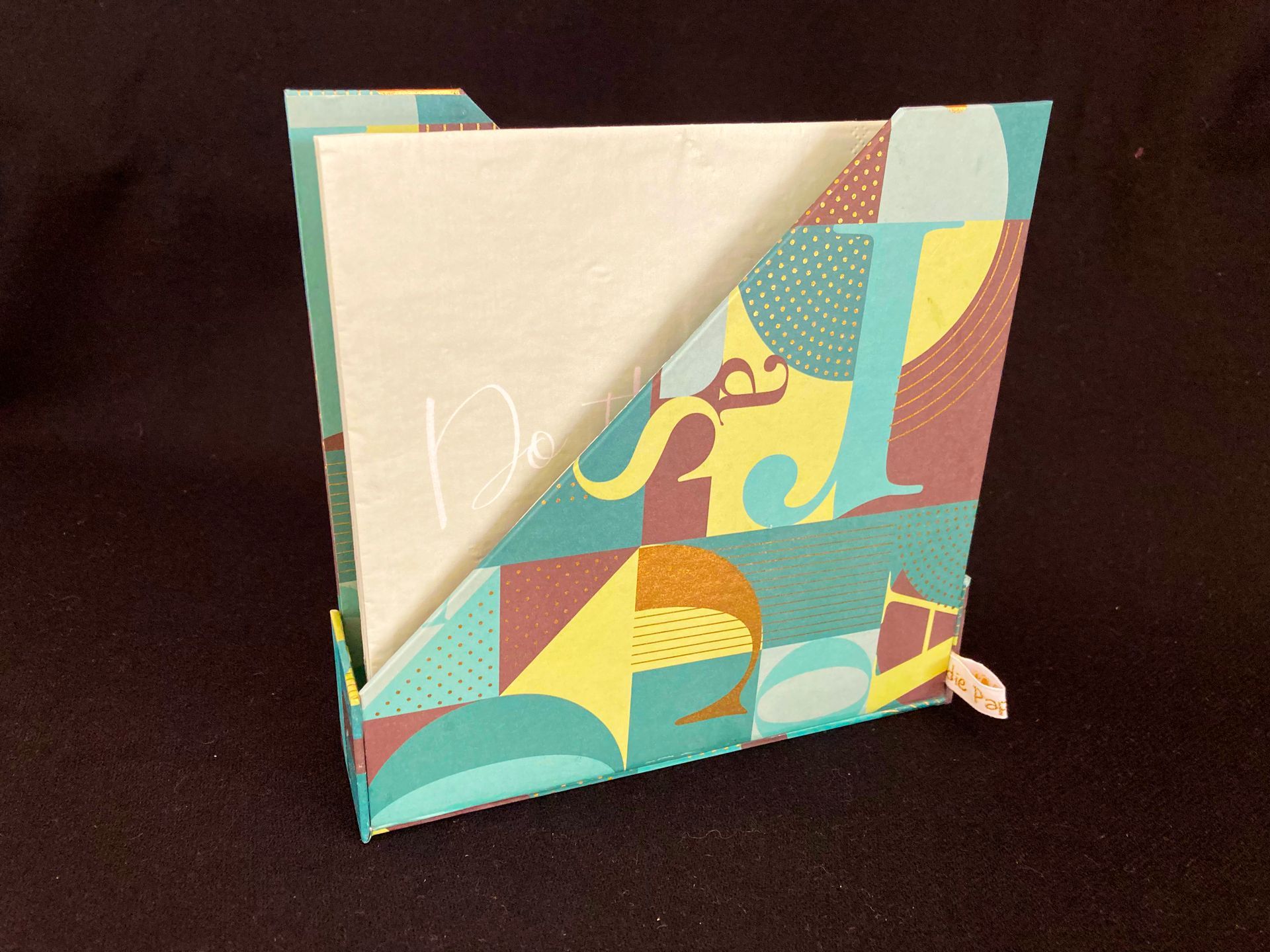 Die Pappen, bestehend aus 100% recyceltem Altpapier, werden geschnitten, in Buchbindetechnik mit hochwertigen Papieren bezogen und anschließend verleimt. Ich verwende Carta Varese Papiere